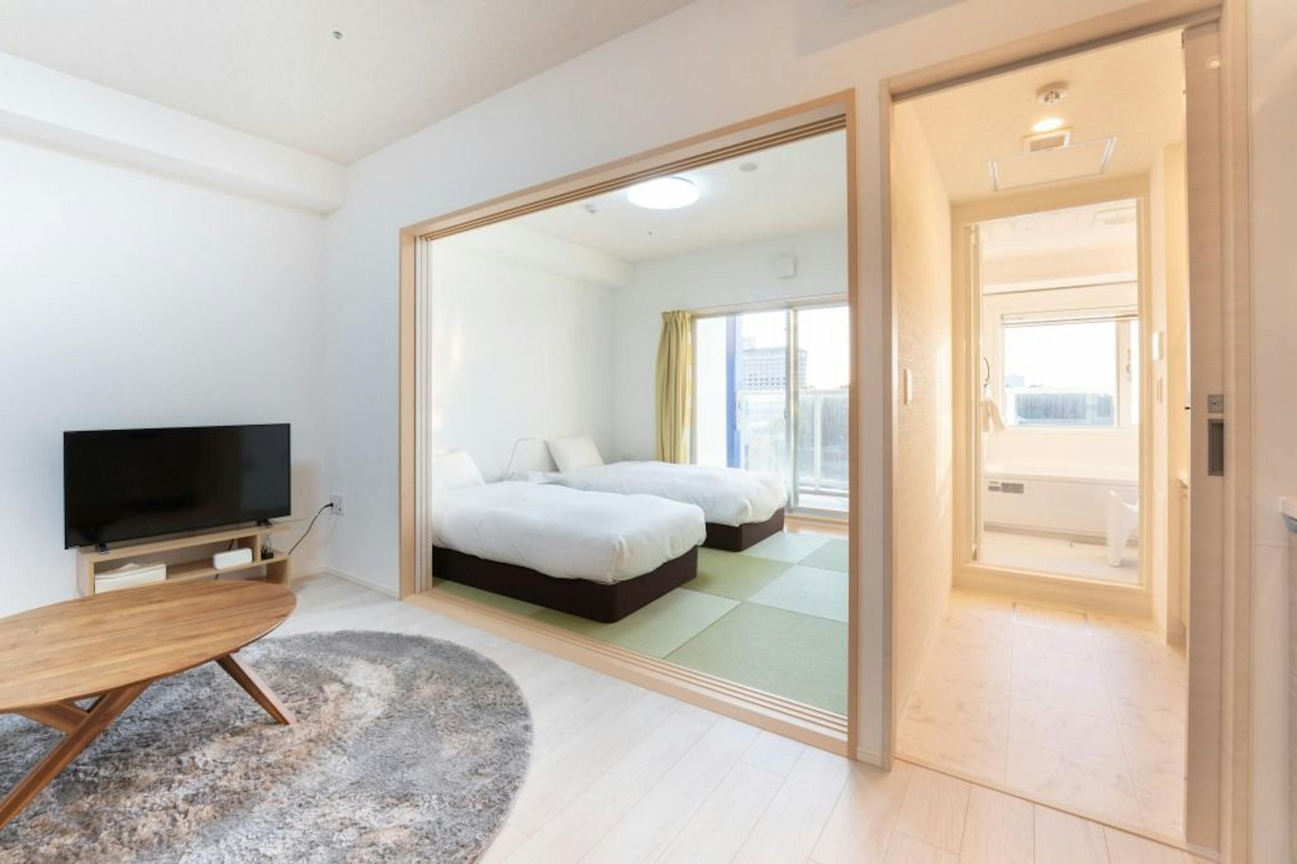 ベッドは2台なので3人以上の場合はクローゼットに布団があるので、リビングのソファベッドに布団をセットして寝ました。