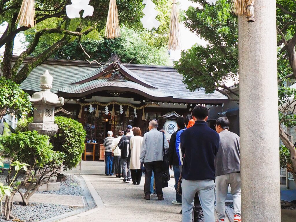 神社自体オフィス街の中にあり、小じんまりとしているので通り過ぎてしまいそうな感じなのですが、土曜日のお昼頃に行くと道路にはみ出そうな勢いの人が並んでいました。