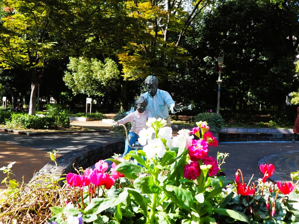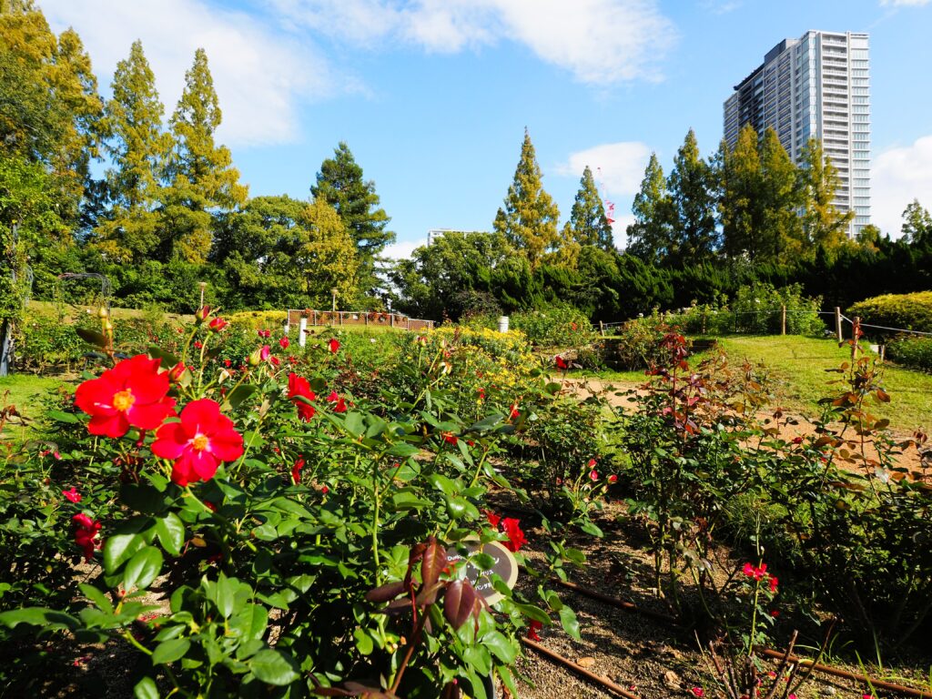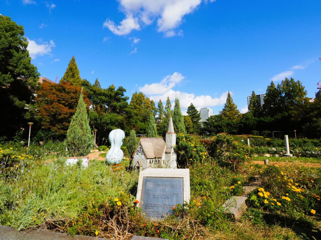 この公園はテニス場とバラ園に分かれていて、バラ園の方には遊具や噴水がある庭園になっていました。