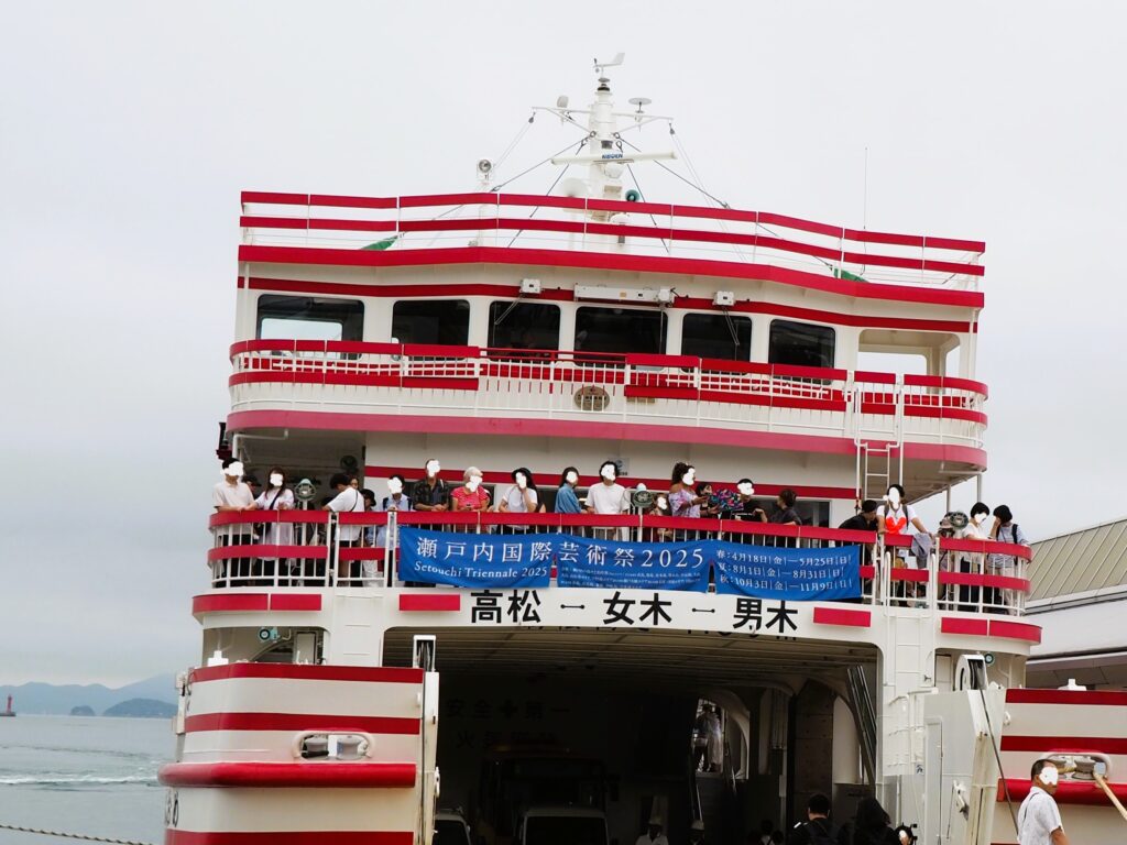 直島と豊島は岡山県からも出航していますが、平日でも大混雑しているそうです💦
