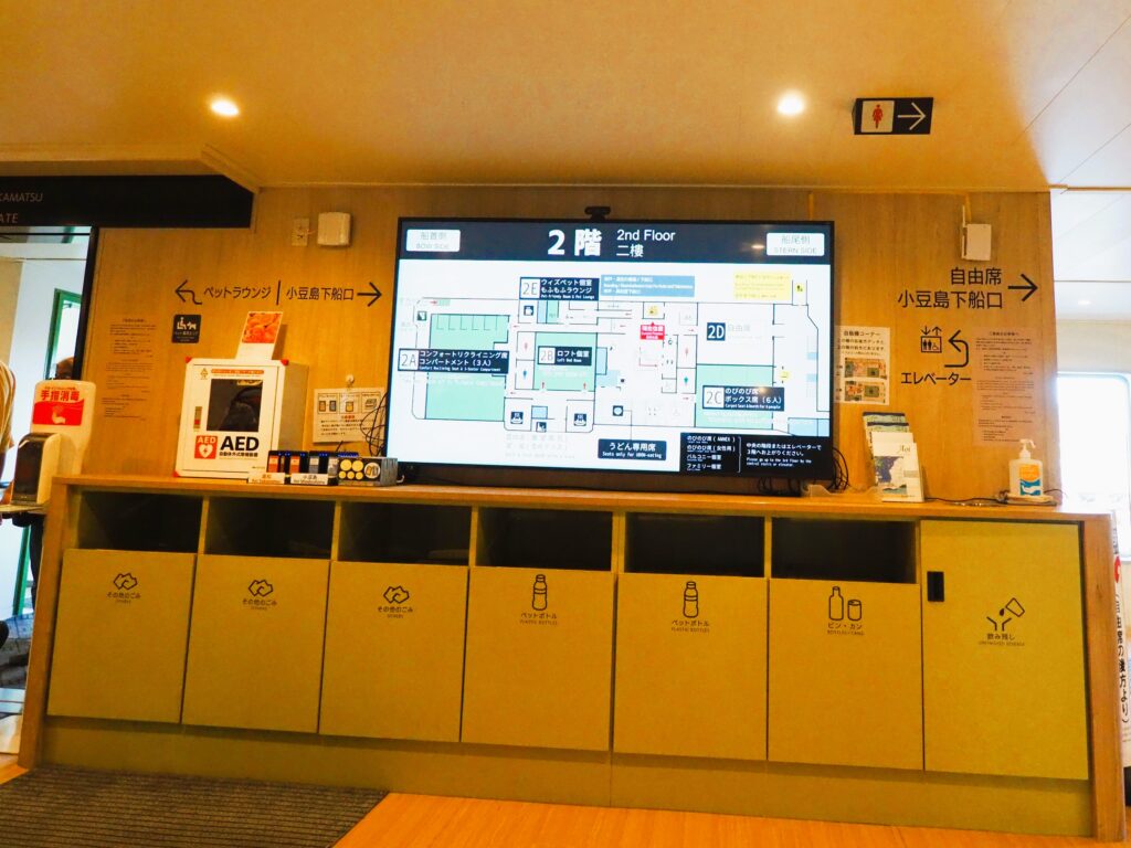 今回は所要時間1時間だったので利用しませんでしたが、有料で個室や大浴場・足湯、プレミアム席・ペット室など船の中を満喫できるようになっています。