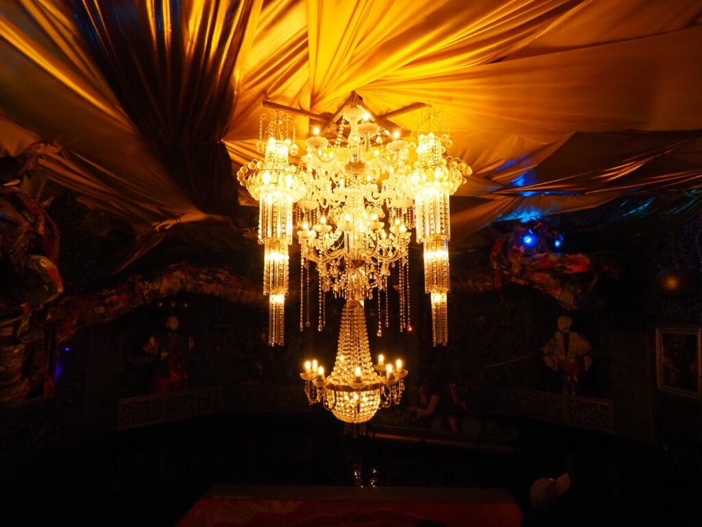 シャンデリアと民話というミスマッチなようで空間には溶け込んでいてそこが斬新で面白い作品でした。