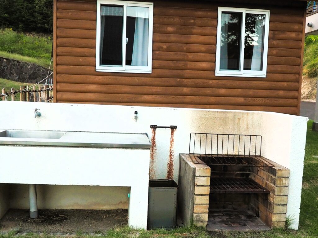 外にはそれぞれの敷地内に流しとBBQ用コンロがあります。
