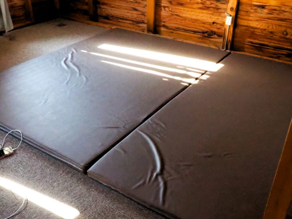 下にはマット(3畳分くらい)が敷いてあったので持参したカーペットを上から敷きました。