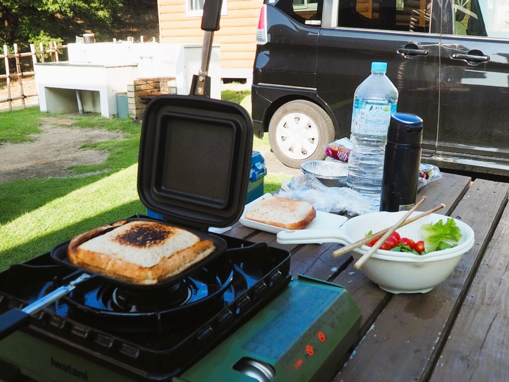朝食は卵のホットサンドにしました。