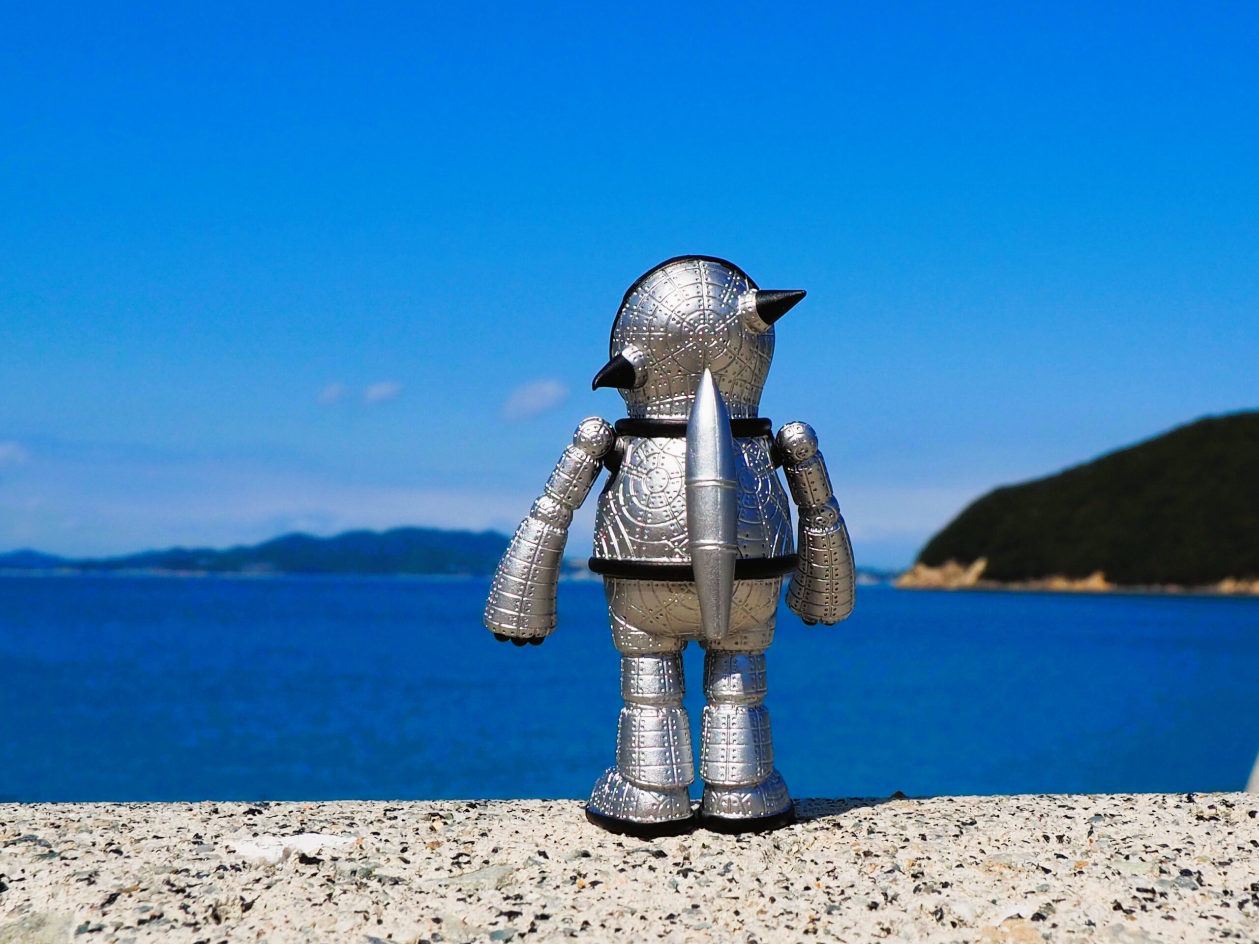ジブリに出てきそうな巨大オブジェなのですが、休憩しながら海をみているように見えますね。