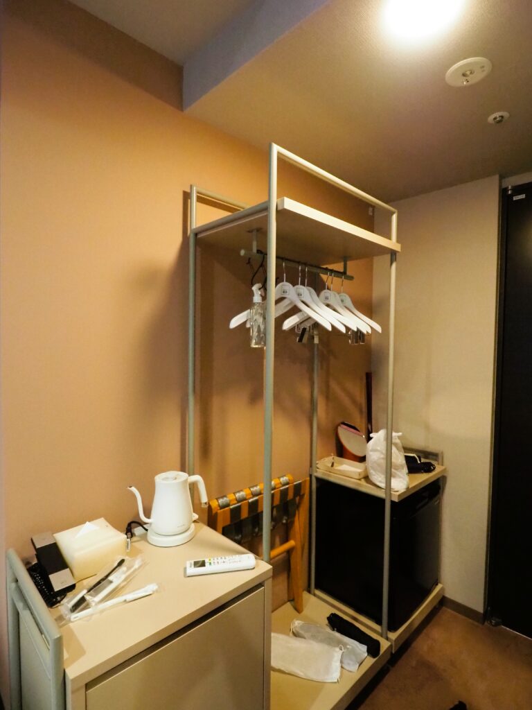その横にハンガーや荷物を置く台など