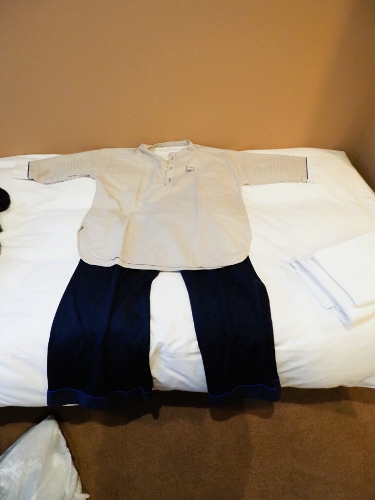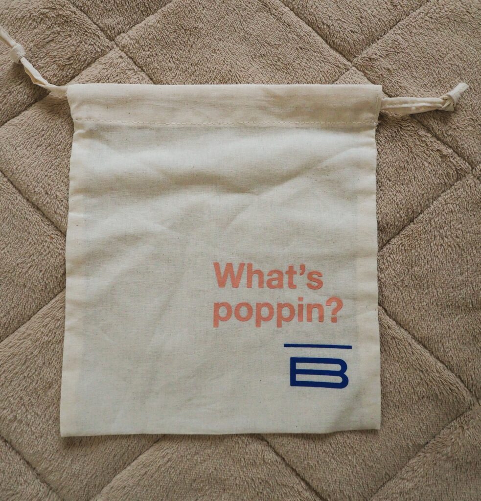 チェックイン時にスタッフさんから説明を受け、アメニティなどを入れる巾着を人数分頂きました。