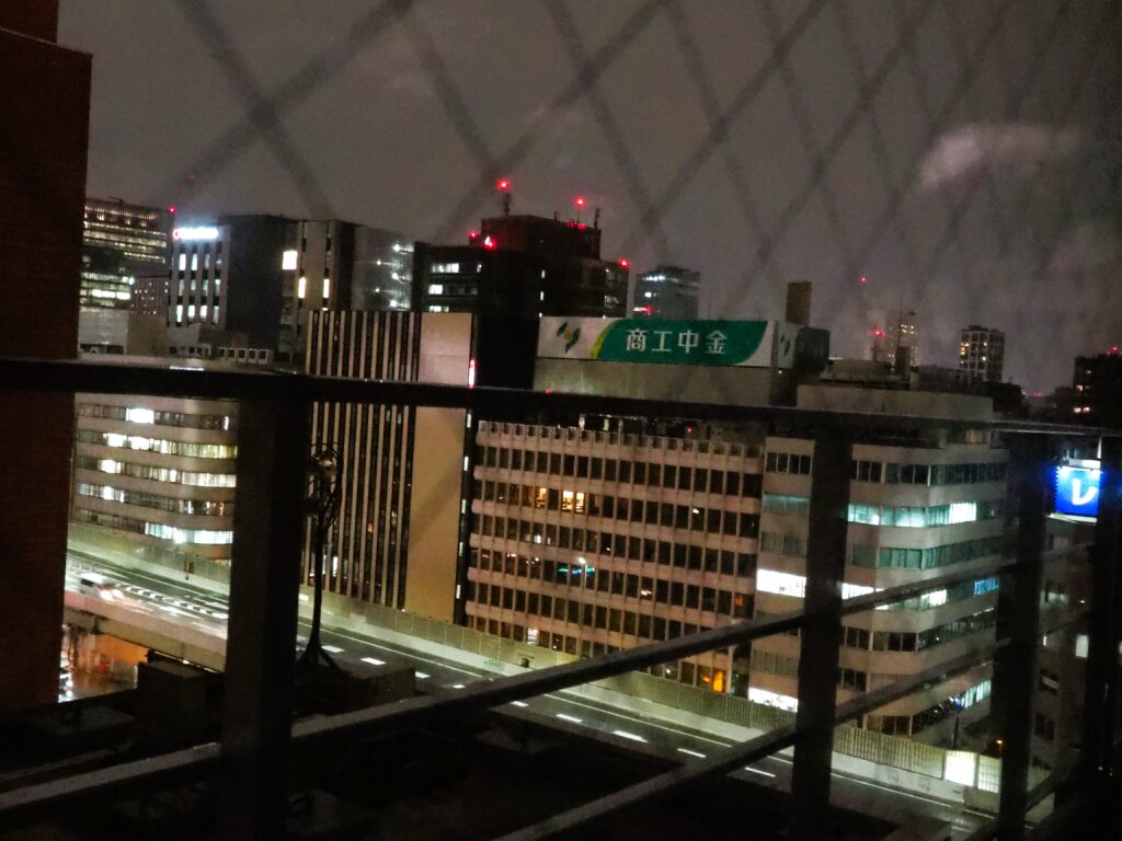 角部屋だと正面の窓からよく見えそうだけど、角部屋の隣の部屋なので斜めに景色がみえました。