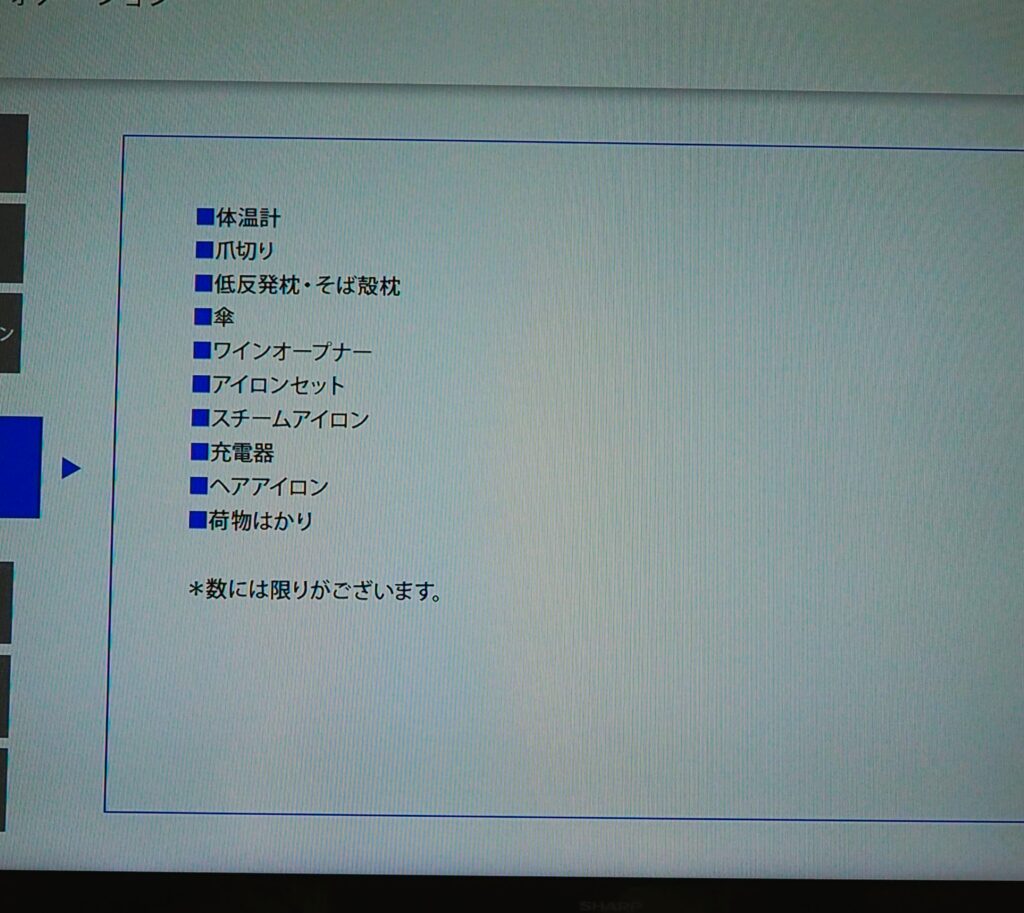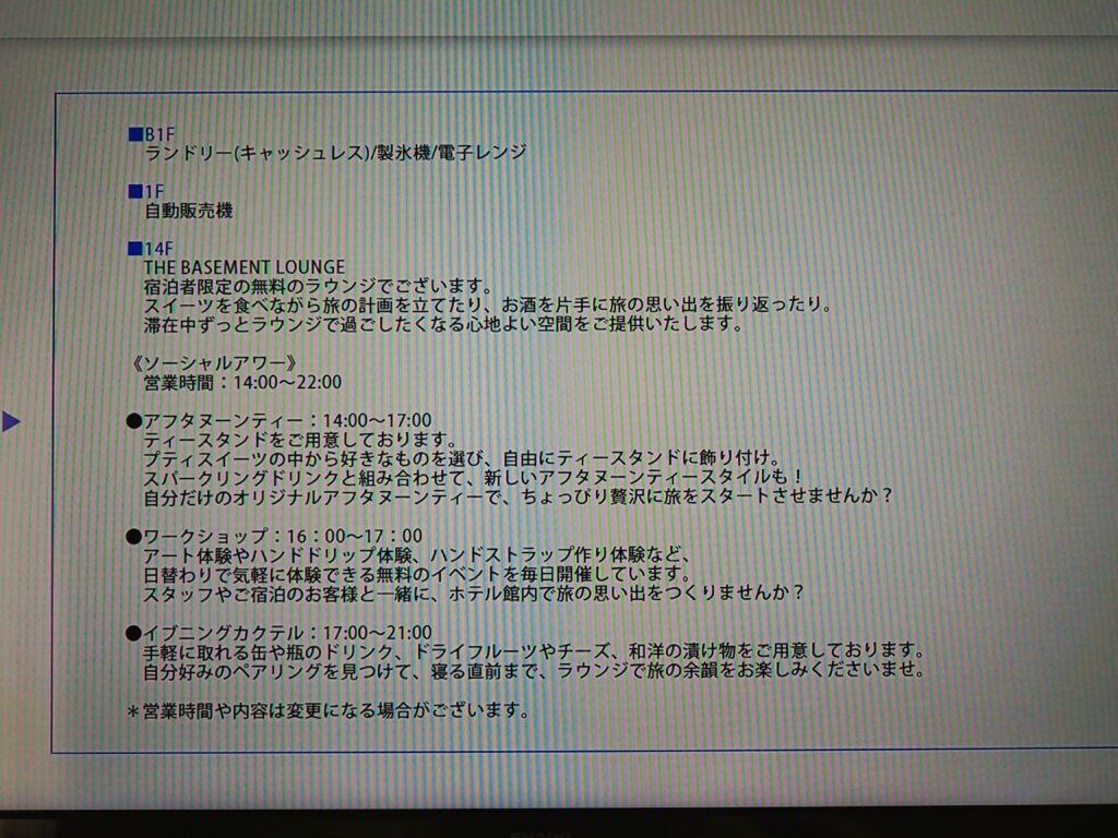 昔ながらの机の引き出しに入ってる案内がないので、テレビでホテルの案内を見ました。