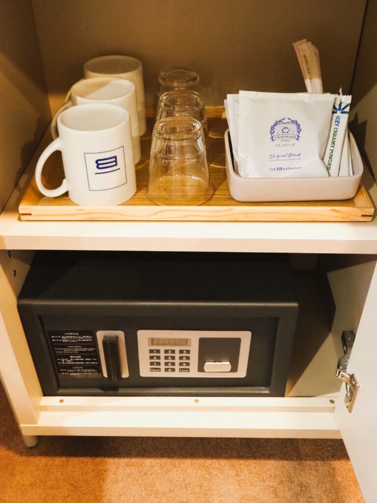 その下にカップやドリップコーヒ・金庫がありました。