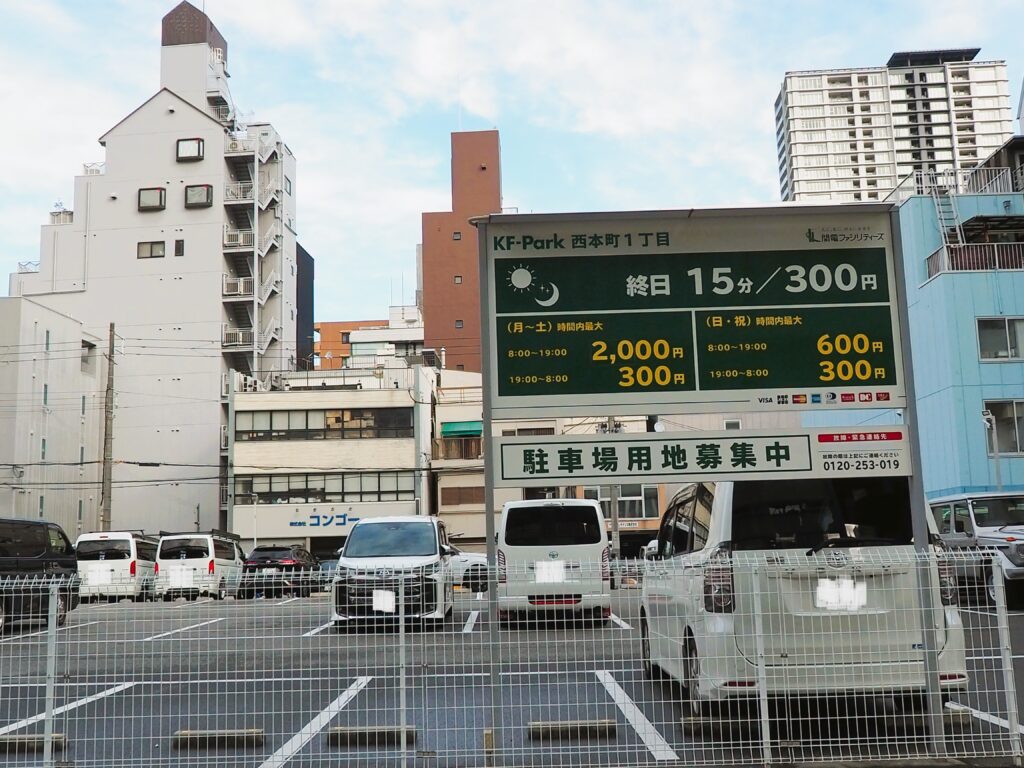 ホテルの提携駐車場はありませんが、近くに広くて停めやすそうな駐車場がありました。