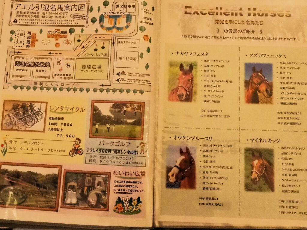 功労馬が居る所の地図や案内、アクティビティなどの紹介がありました。