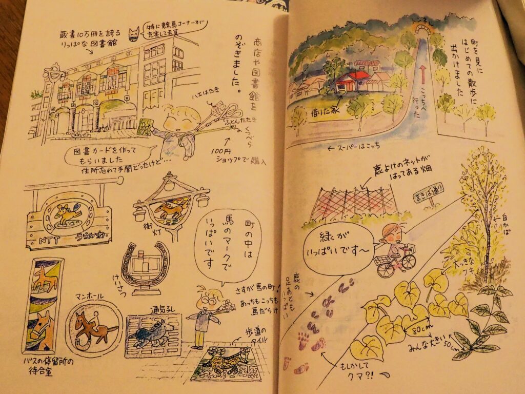 浦河町に移住体験された方の体験を絵日記した本が置いてありました。