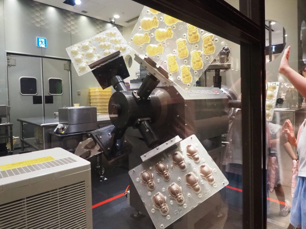 実際にガラス張りでお菓子作りの工程が見れる工場があったり、できたてのチョコを食べたりすることができます。
